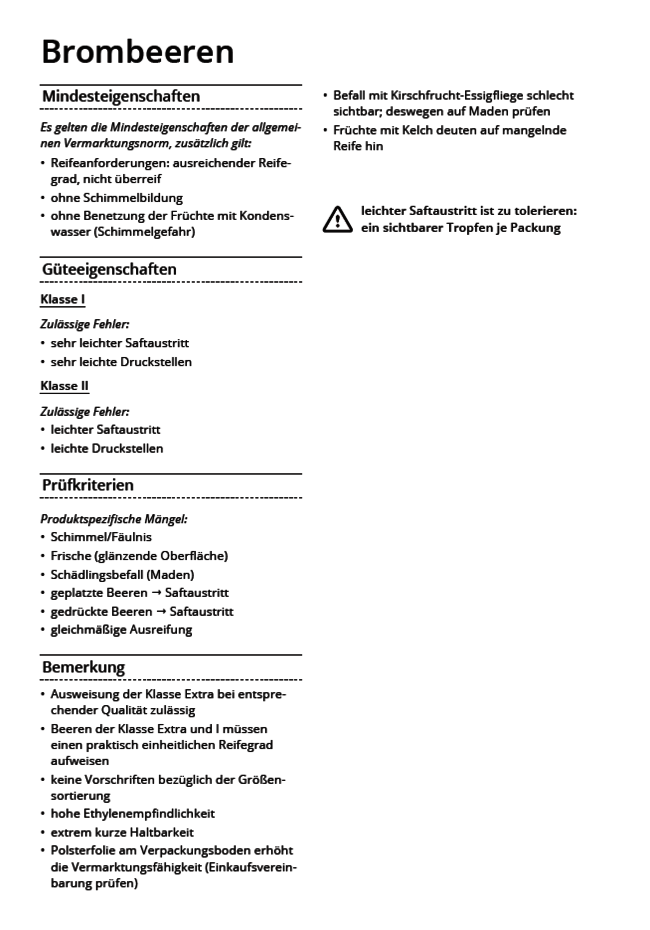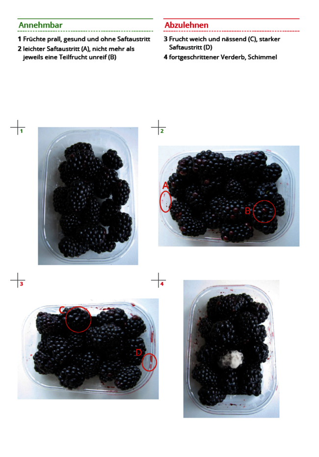 Das "Handbuch zur Qualitätsbeurteilung von Obst und Gemüse" enthält das Relevante aus den zutreffenden Normen, Schadbilder der häufigsten Fehler und die wichtigsten Prüfkriterien für über 100 der gängigsten Obst und Gemüse Sorten. Das Handbuch ist darauf ausgelegt Ihnen ein schnelles, robustes und objektives Hilfsmittel zur Bewertung einer Partie Obst oder Gemüse zu sein. Auch zur Schulung Ihrer Mitarbeiter im Bereich der Qualitätssicherung eignet sich das Handbuch und es gestattet tiefe Einblicke in die Thematik von frischem Obst und Gemüse zu bekommen.